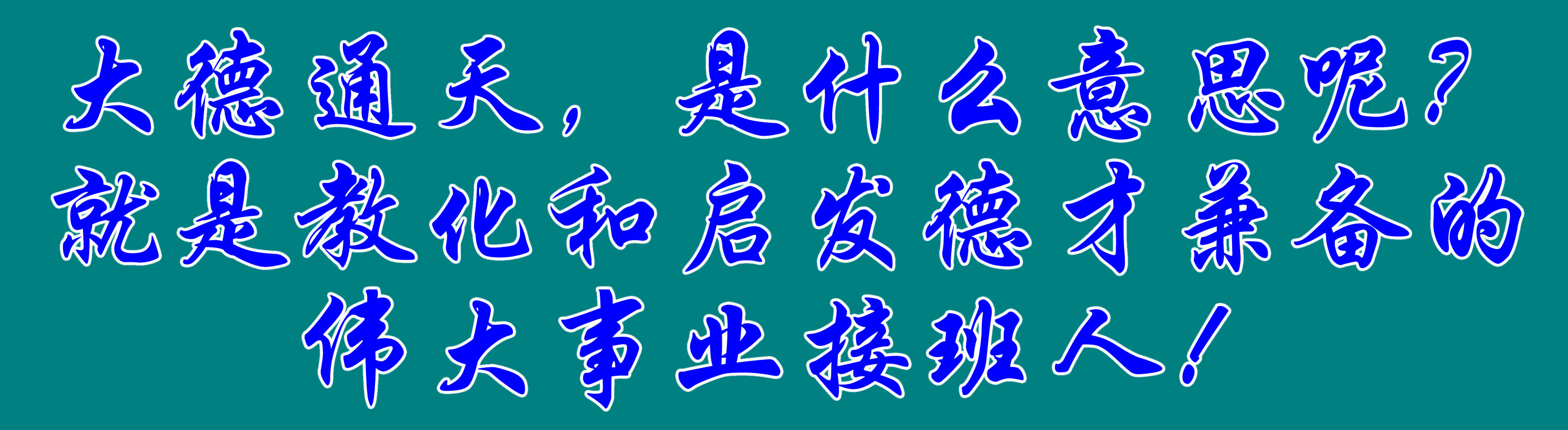 大(da)德通天(tian),是什么(me)意思呢?就是教(jiao)化和(he)啟發德才兼備(bei)的偉大(da)事(shi)業接(jie)班(ban)人(ren)!