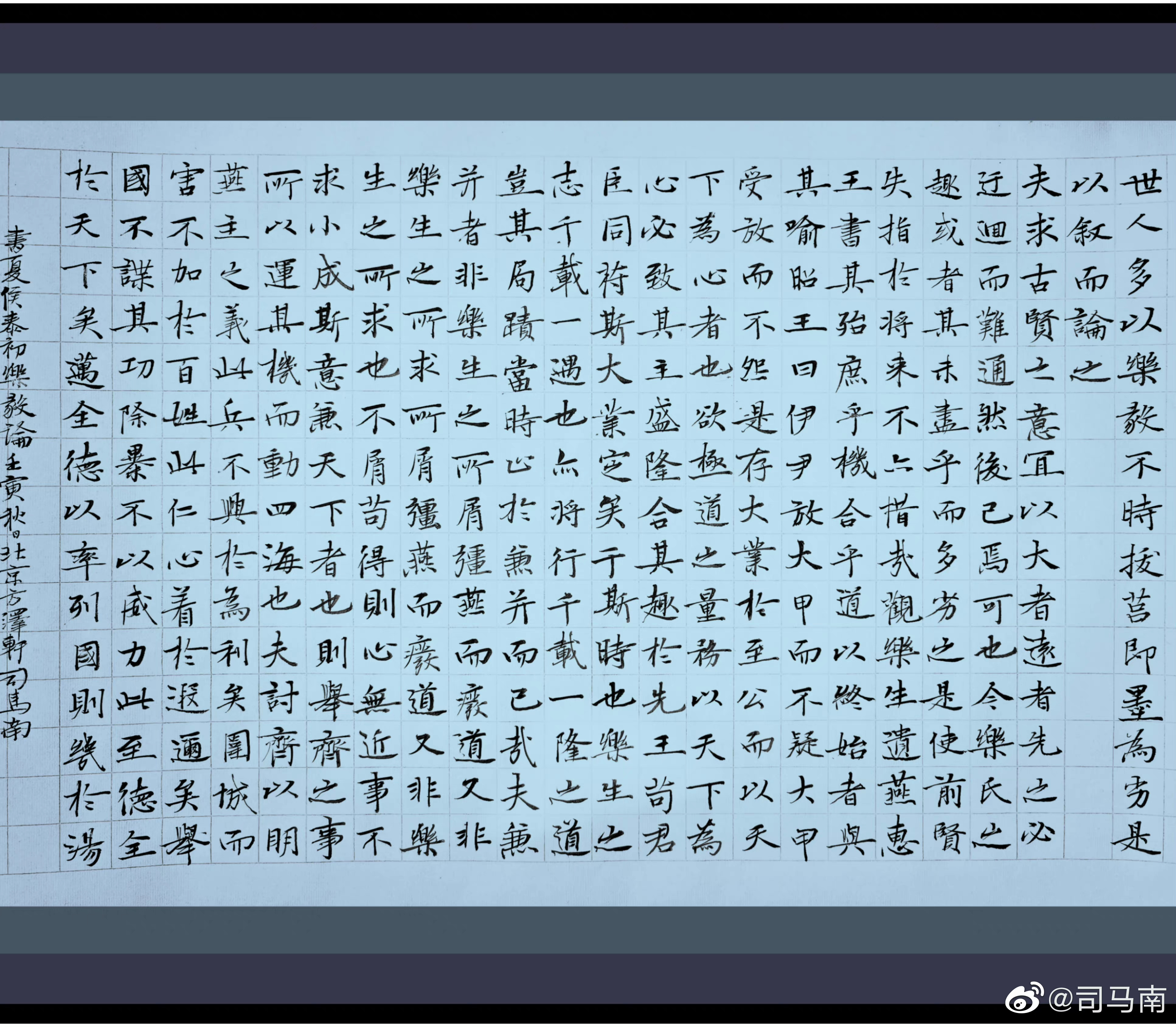 行為端莊,舉止大方的人,一般寫字中規中矩,秀氣,大氣。整篇文字相互呼應,墨跡均勻,布白勻稱,一氣呵成。給人以厚重沉穩,大度祥和之感,這是書法的最高境界了!