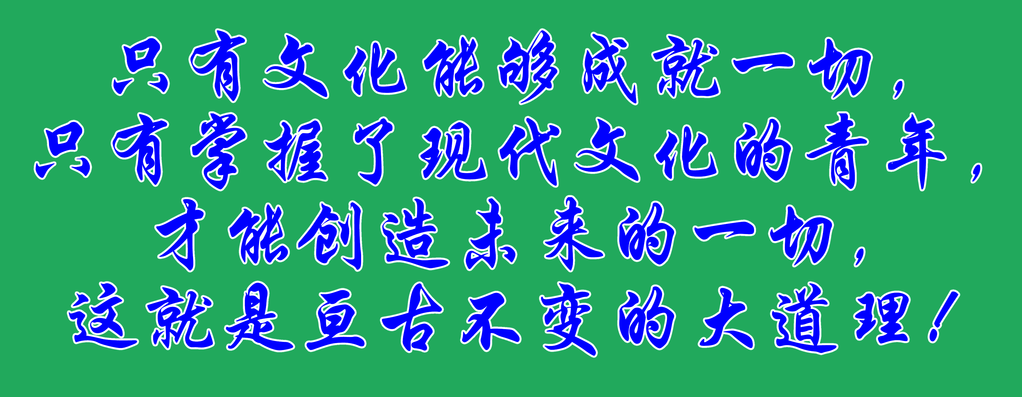 只有文化能夠成就一切,只有掌握了現代文化的青年,才能創造未來的一切,這就是亙古不變的大道理!
