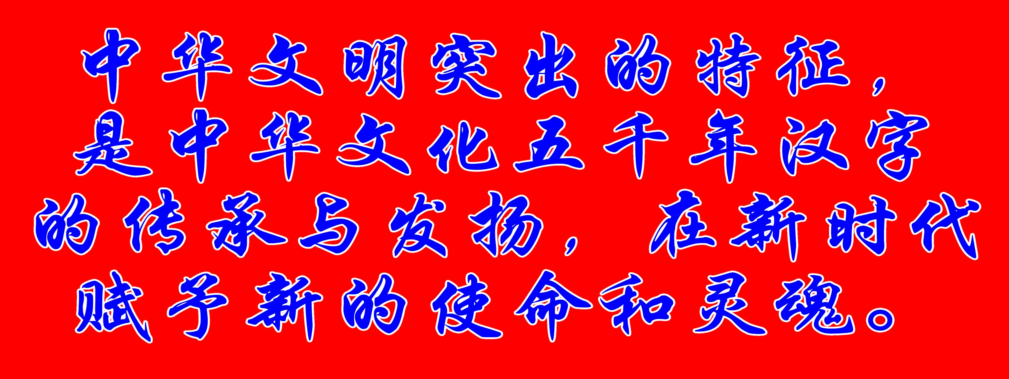 中華文明突出(chu)的(de)特征,是中華文化(hua)五千年漢字的(de)傳承與(yu)發(fa)揚(yang),在新時代賦予新的(de)使命和靈(ling)魂。