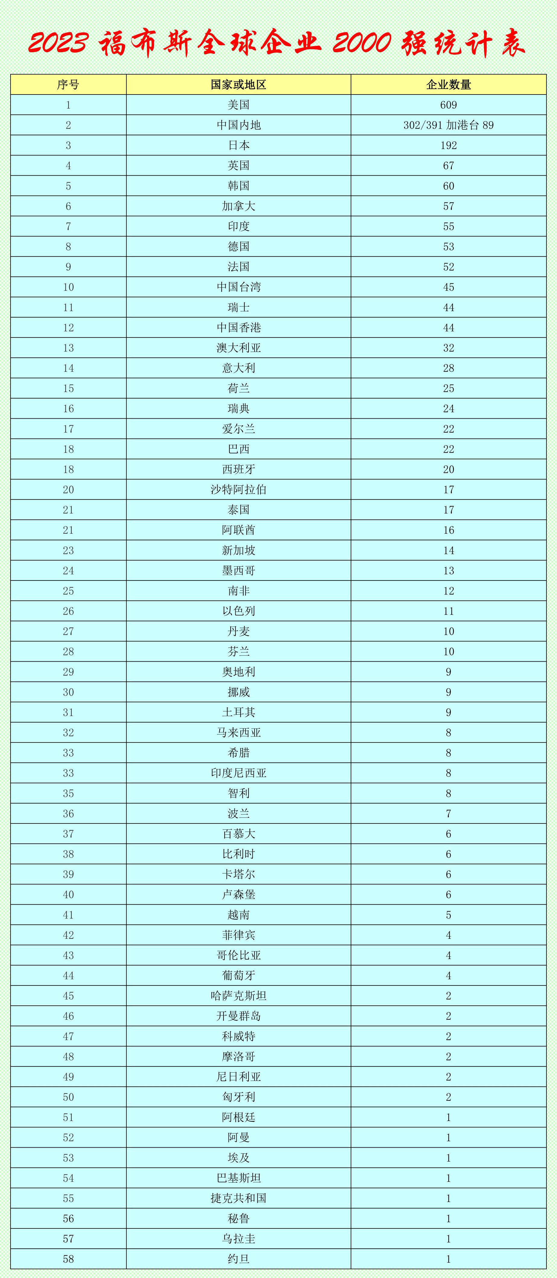 從2003年開始,每年發布全球企業2000強榜單,中國企業以后來者居上的磅礴之勢進軍福布斯,短短二十年,已經成為世界亞軍,這是何等的速度,何等的成就,何等的偉大啊!