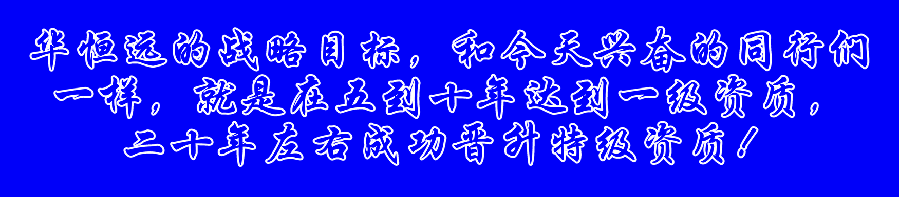 華(hua)恒遠的戰略目標,和今天興奮的同(tong)行們(men)一(yi)樣,就是在五到十(shi)年達到一(yi)級資質(zhi),二(er)十(shi)年左右成功(gong)晉升特(te)級資質(zhi)!