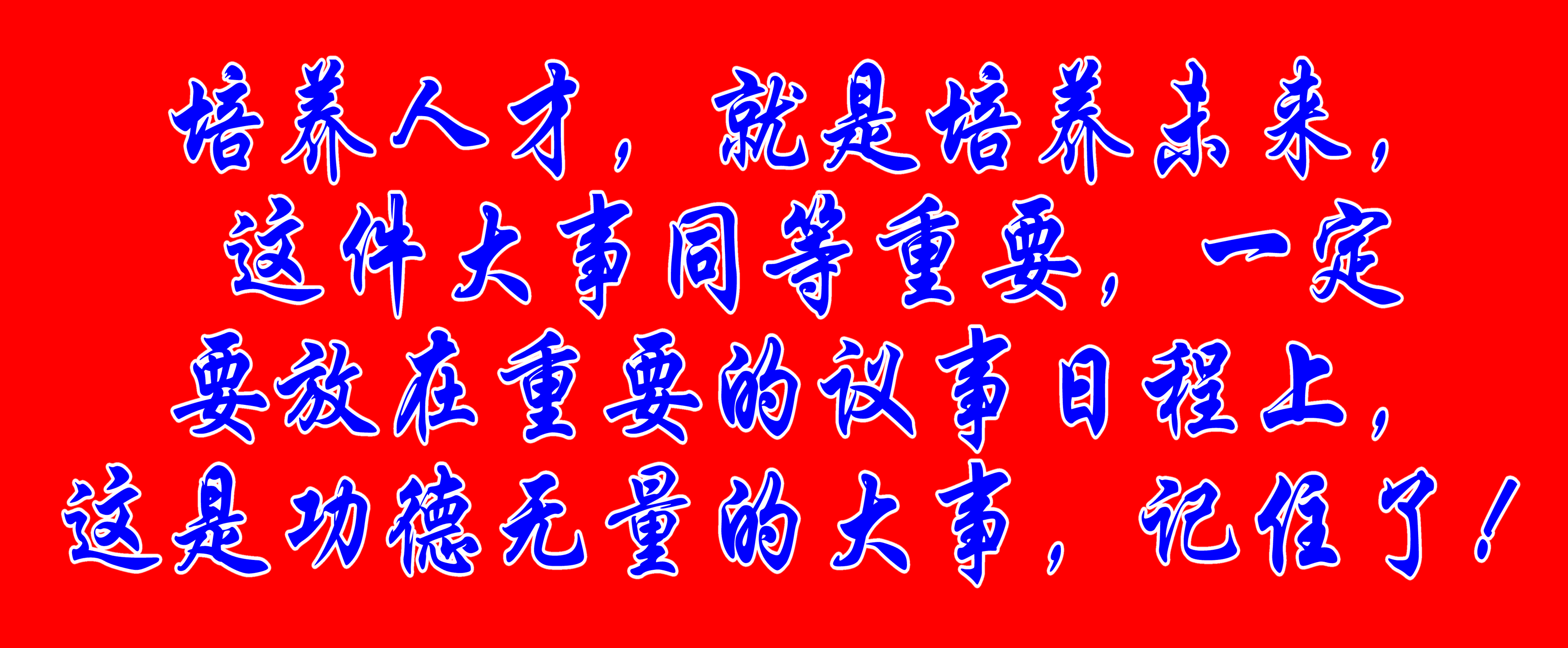 另(ling)外,培養人才,就是培養未來,這(zhe)(zhe)件大(da)事(shi)同等重(zhong)要(yao),一定要(yao)放在(zai)重(zhong)要(yao)的議(yi)事(shi)日程上,這(zhe)(zhe)是功(gong)德無量的大(da)事(shi),記住了!