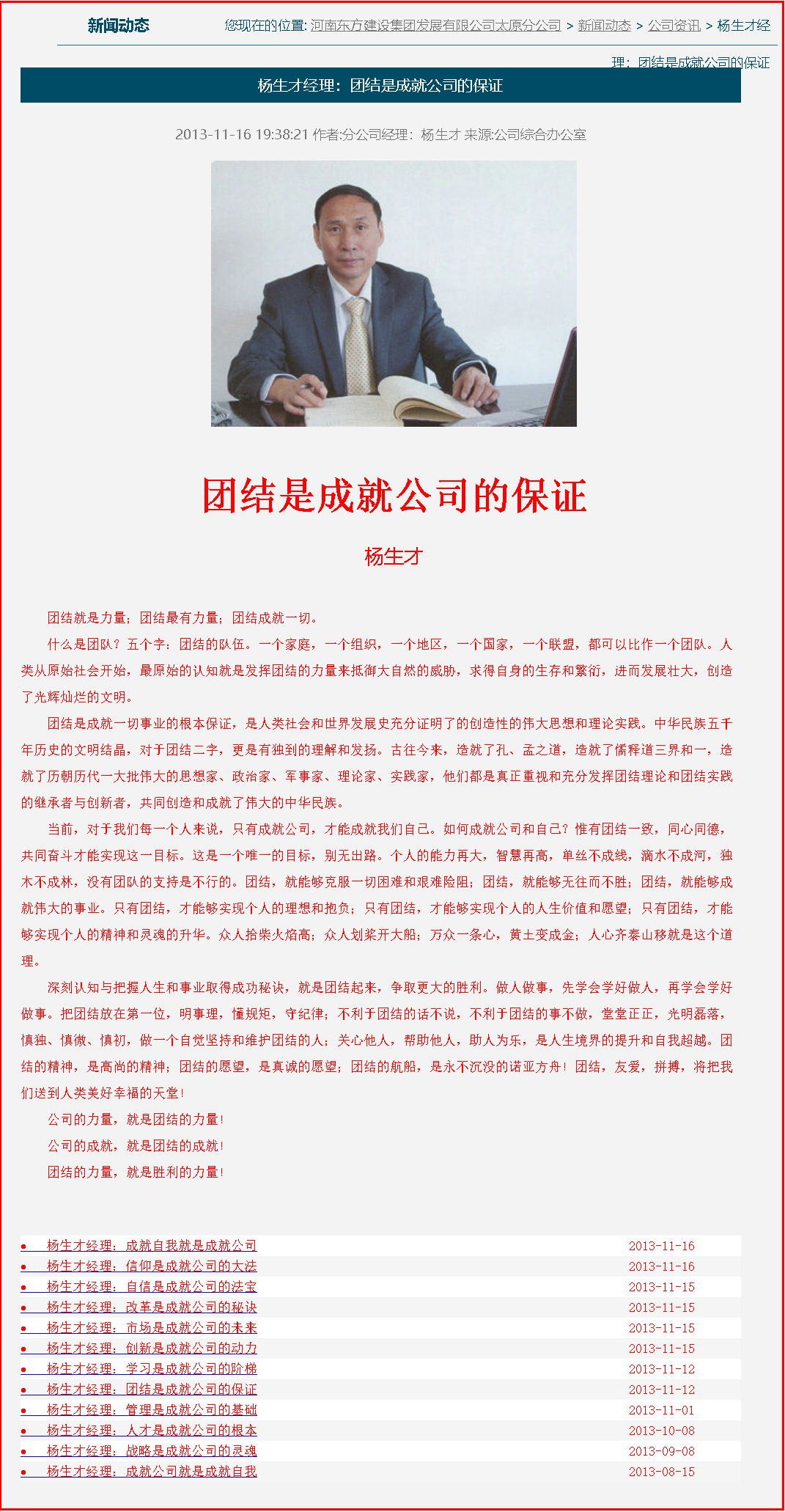 董事長2013年所著《成(cheng)就(jiu)公司就(jiu)是成(cheng)就(jiu)自(zi)我》發展戰略十三篇,三位好(hao)好(hao)感悟,好(hao)好(hao)感應,激(ji)發靈(ling)感,激(ji)發靈(ling)性,釋(shi)放動能,釋(shi)放活力,把團隊凝聚在為了未來,為了公司,為了自己,團結一心,共同奮(fen)斗,迎接人生(sheng)最(zui)大的(de)精(jing)彩!