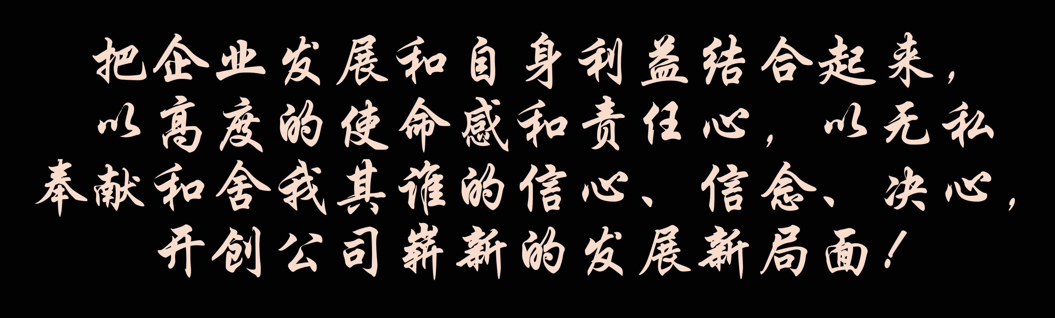 這(zhe)些忠(zhong)告和(he)勸戒,希望(wang)你們入(ru)心入(ru)腦,不(bu)(bu)要只(zhi)看眼前利(li)益(yi),要看長遠利(li)益(yi),識大體(ti),顧大局,把全體(ti)員工的(de)利(li)益(yi)放在第一位,去謀劃,去實踐,去落實!希望(wang)你們不(bu)(bu)負(fu)(fu)眾望(wang),不(bu)(bu)負(fu)(fu)重托,不(bu)(bu)辱使命(ming),在董事長和(he)副董事長的(de)領導和(he)支持下,同(tong)心同(tong)德,不(bu)(bu)離不(bu)(bu)棄(qi),團(tuan)結起來,爭取更(geng)大的(de)勝利(li)!