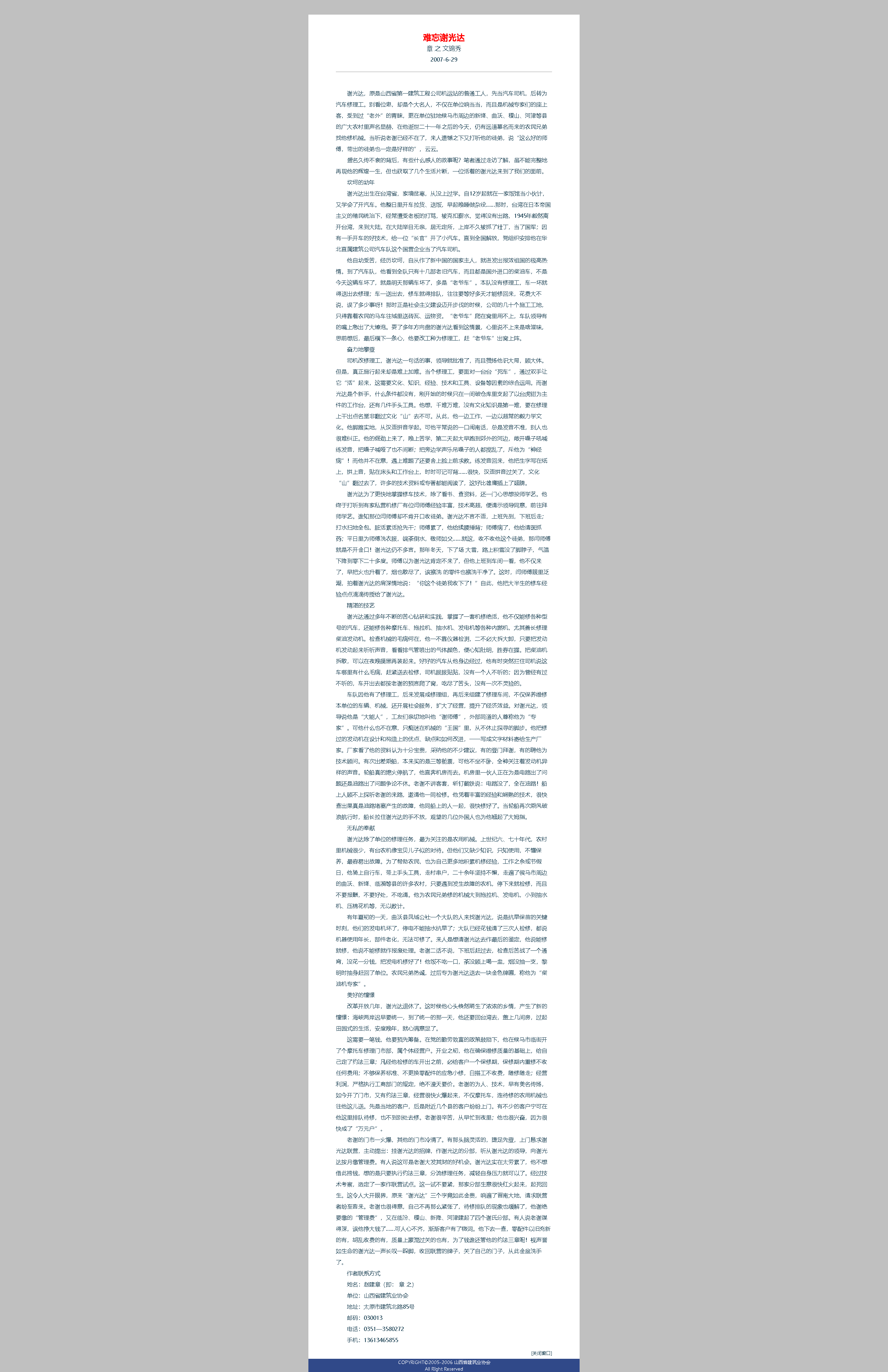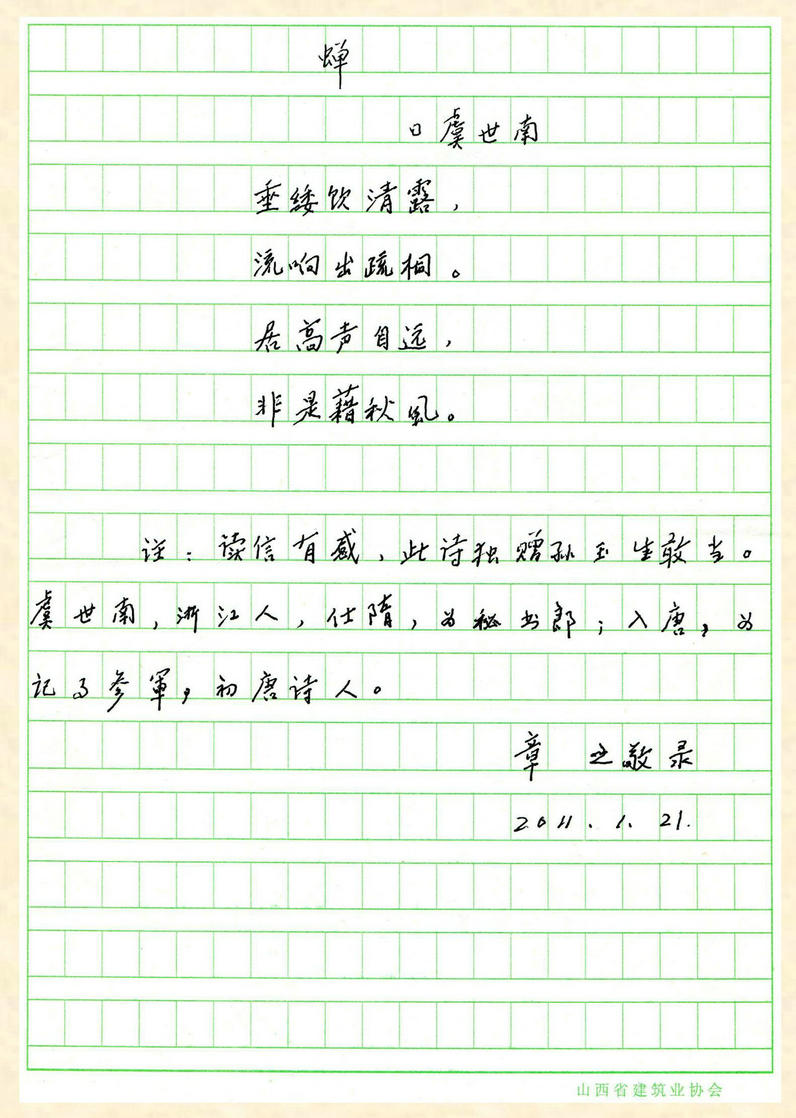 他叫趙建(jian)章,章之是他的筆名。1935年(nian)生人(ren),河北(bei)定洲人(ren),原省建(jian)一公(gong)司辦公(gong)室高級(ji)文(wen)秘,省建(jian)總公(gong)司駐北(bei)京辦事(shi)處(chu)主任,建(jian)筑業協會會刊編輯部負(fu)責人(ren)。