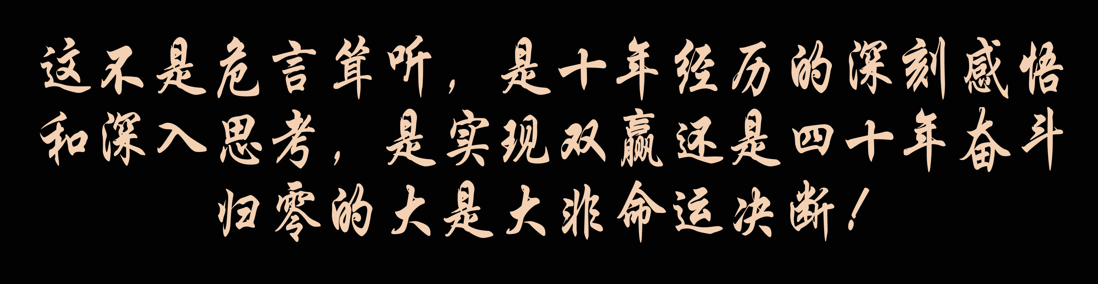這不是危言聳聽,是十年經歷的(de)深刻感悟(wu)和深入思考(kao),是實現(xian)雙贏還是四(si)十年奮(fen)斗歸零的(de)大(da)是大(da)非命(ming)運決斷(duan)!