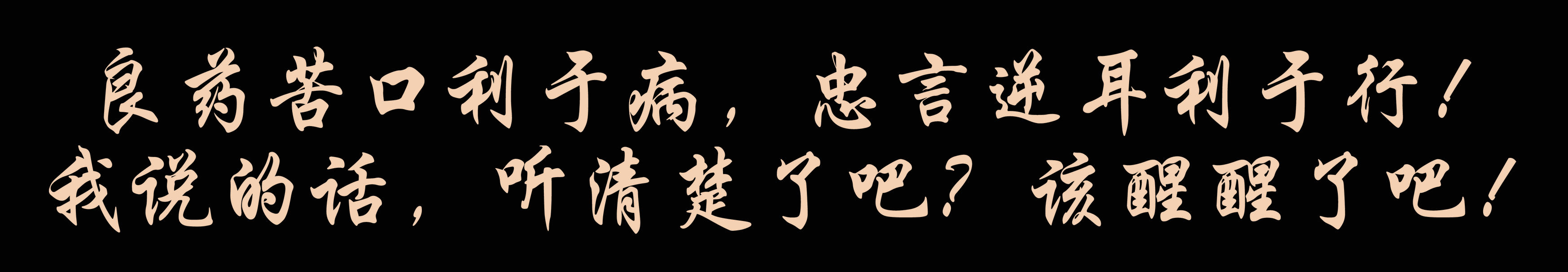 良藥苦口(kou)利(li)于(yu)病,忠言(yan)逆耳利(li)于(yu)行!我(wo)說的(de)話,聽清楚了(le)吧(ba)?該(gai)醒醒了(le)吧(ba)!