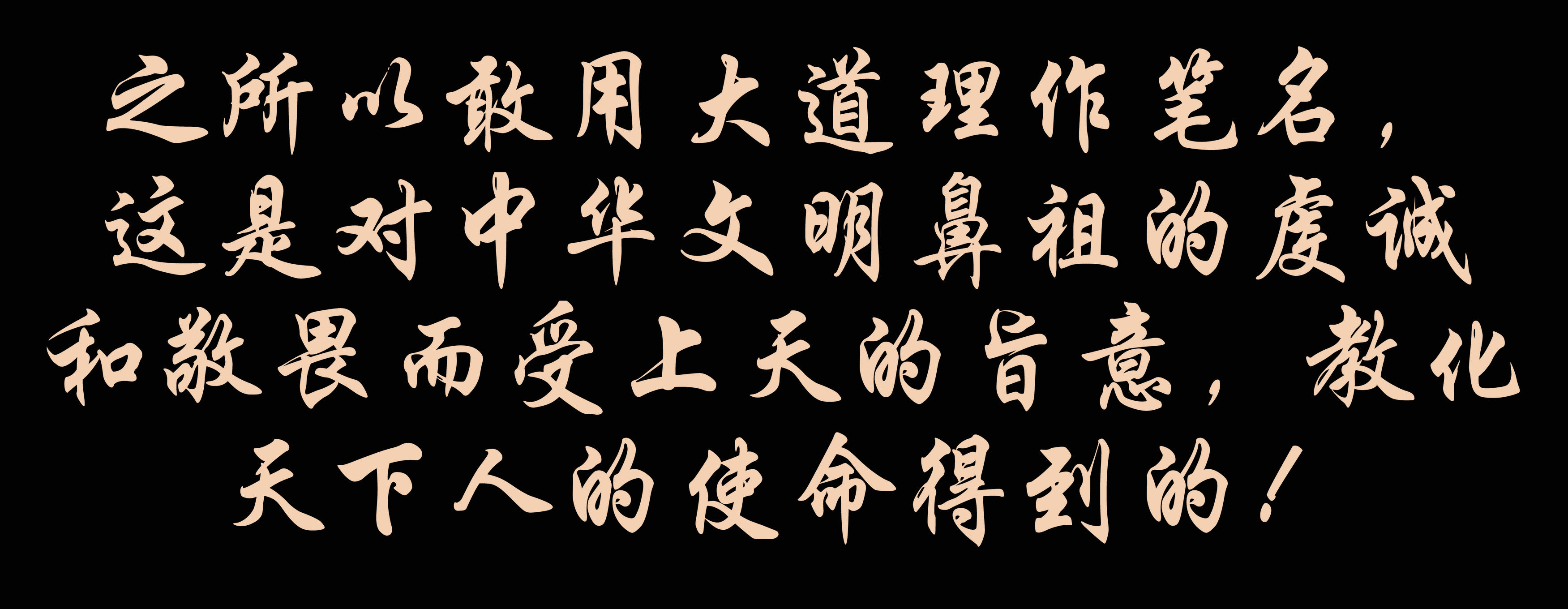 之(zhi)所(suo)以敢用大道理(li)作筆名,這是對中華文明鼻祖的虔誠和敬畏而受上天的旨意,教化天下人的使命得到的!