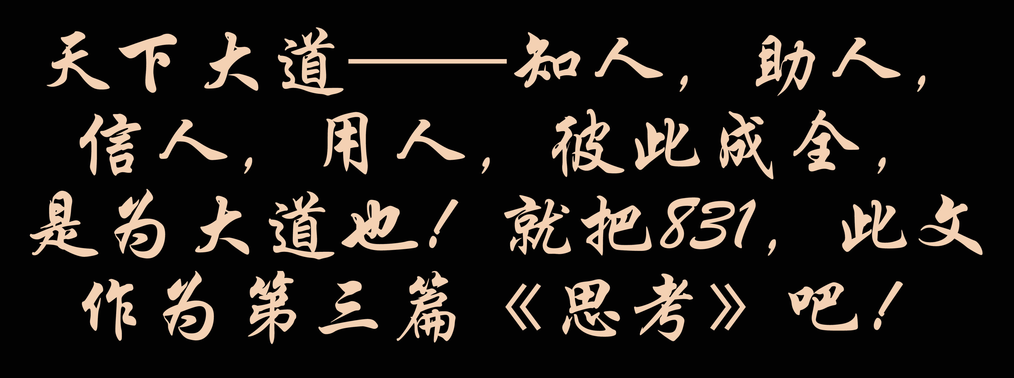 天下(xia)大道(dao)——知人,助(zhu)人,信人,用人,彼此成全(quan),是為大道(dao)也!