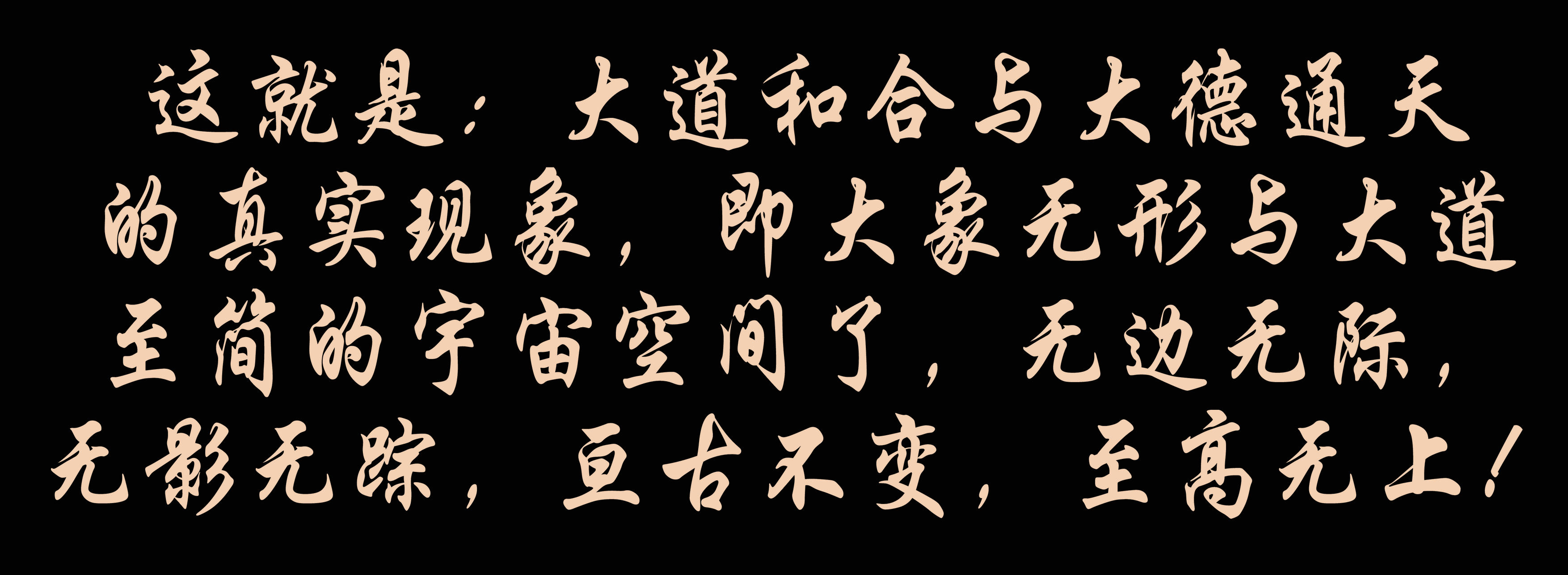 這就(jiu)是:大(da)道和合(he)與大(da)德通天的真(zhen)實(shi)現象,即大(da)象無(wu)(wu)形與大(da)道至(zhi)簡的宇宙(zhou)空間了,無(wu)(wu)邊無(wu)(wu)際,無(wu)(wu)影無(wu)(wu)蹤,亙古不變(bian),至(zhi)高無(wu)(wu)上!
