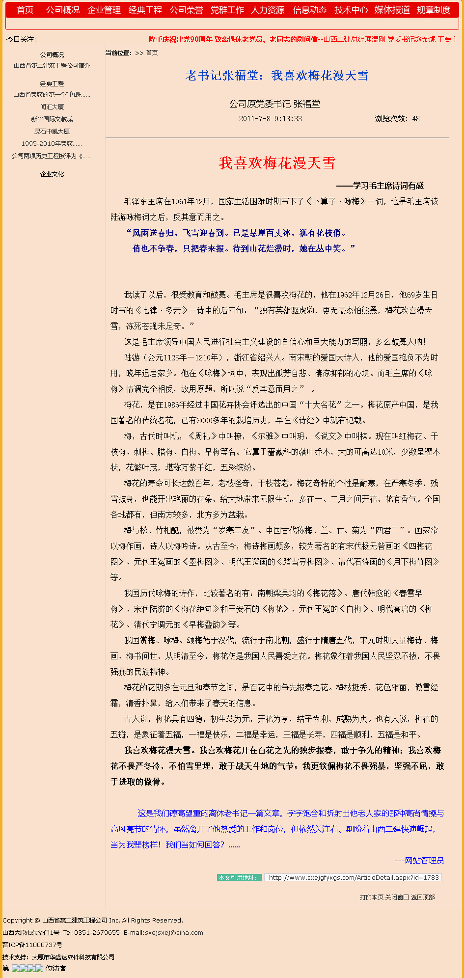 今天(tian),太原日(ri)報一(yi)則消息引起我(wo)的(de)關注(zhu),其中(zhong)一(yi)個(ge)(ge)人(ren)是我(wo)非常(chang)熟悉(xi)的(de),他就是原山西省第二建筑工程(cheng)公司(si)黨委(wei)書記張福堂。那個(ge)(ge)時候(hou)我(wo)在(zai)公司(si)車管科當科長,和他有過一(yi)次交往。