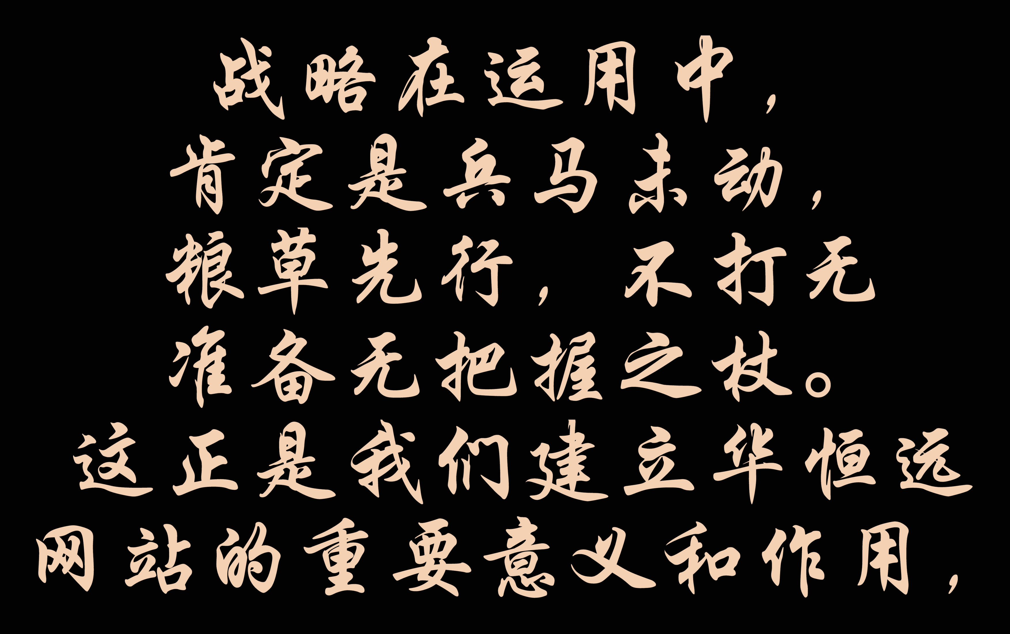 戰略(lve)在運用中,肯定(ding)是(shi)兵(bing)馬(ma)未(wei)動(dong)(dong),糧草先行,不(bu)打(da)無準備無把握(wo)之(zhi)杖(zhang)。這(zhe)正(zheng)是(shi)我們(men)建(jian)立華恒(heng)遠(yuan)(yuan)網(wang)站的(de)重要(yao)意義和作用,讓更多層面更多層次的(de)瀏覽者,知道華恒(heng)遠(yuan)(yuan),喜歡(huan)華恒(heng)遠(yuan)(yuan),就(jiu)已(yi)經達(da)到(dao)了戰略(lve)發展的(de)第一(yi)步,那么(me)第二步就(jiu)好邁開(kai)了!三年時間,人們(men)自然而(er)然接(jie)受(shou)華恒(heng)遠(yuan)(yuan),你們(men)可是(shi)要(yao)出大名的(de),那個時候,才會(hui)真正(zheng)懂得什么(me)是(shi)戰略(lve),才會(hui)自覺(jue)自愿加入到(dao)開(kai)發網(wang)站的(de)行動(dong)(dong)之(zhi)中,那就(jiu)到(dao)了網(wang)站改(gai)版(ban)的(de)必須(xu)空間了!