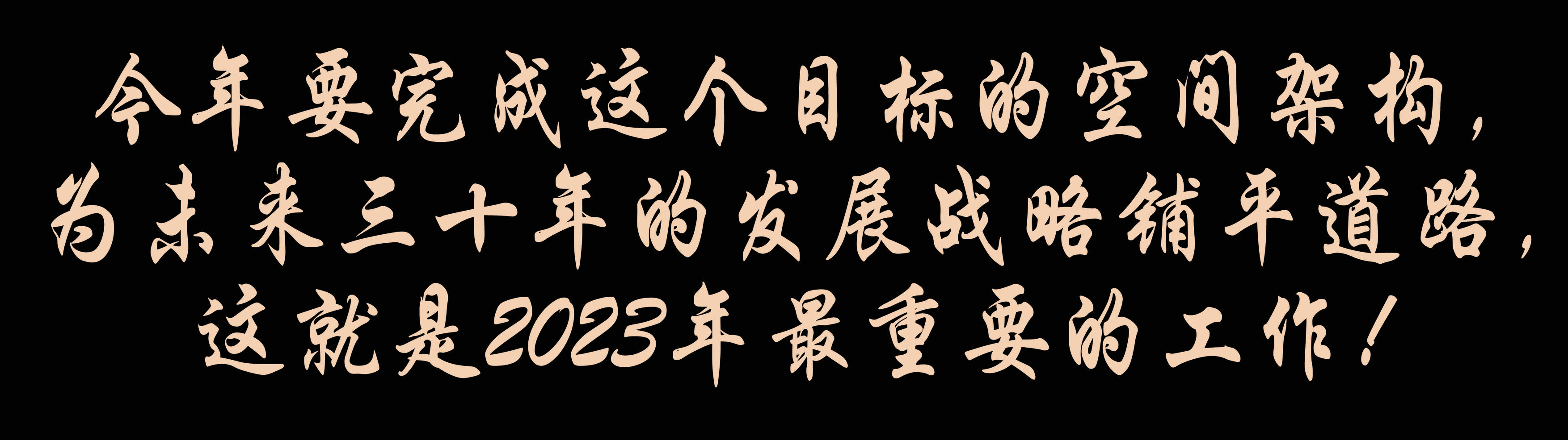 所以,今年要完成(cheng)這個目(mu)標(biao)的(de)空間(jian)架(jia)構,為未來三十(shi)年的(de)發展戰略鋪(pu)平道路(lu),這就是2023年最重要的(de)工作(zuo)!