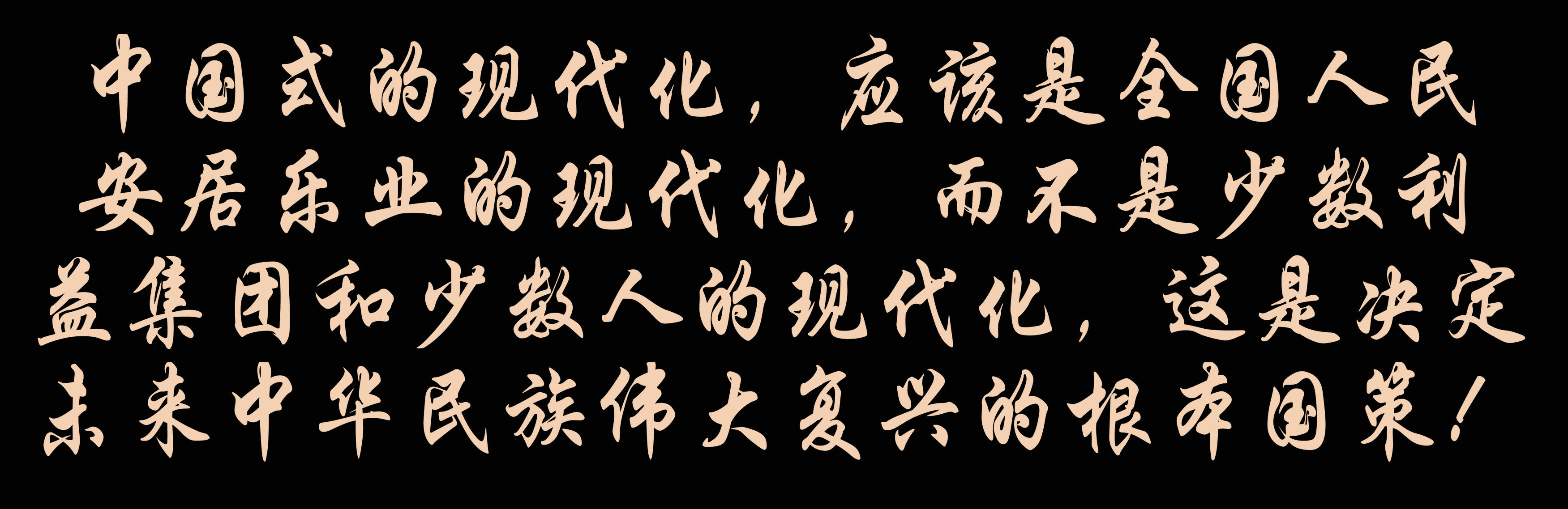 中國式的現代化,應該是全國人民安居樂業的現代化,而不是少數利益集團和少數人的現代化,這是決定未來中華民族偉大復興的根本國策!