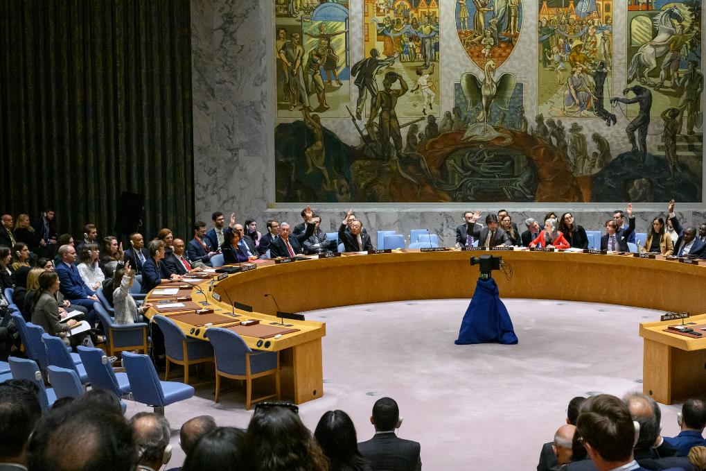 這是12月8日(ri)在(zai)位于紐約(yue)的(de)聯合(he)國總(zong)部(bu)拍攝的(de)聯合(he)國安理(li)會(hui)會(hui)議(yi)現場(chang)。美(mei)國當天(tian)否決了(le)聯(lian)合國安理會一份旨在推動(dong)實現巴以(yi)人道主義停火的決議草案。新華社發(聯合國供圖/洛(luo)伊·費(fei)利(li)佩攝(she))