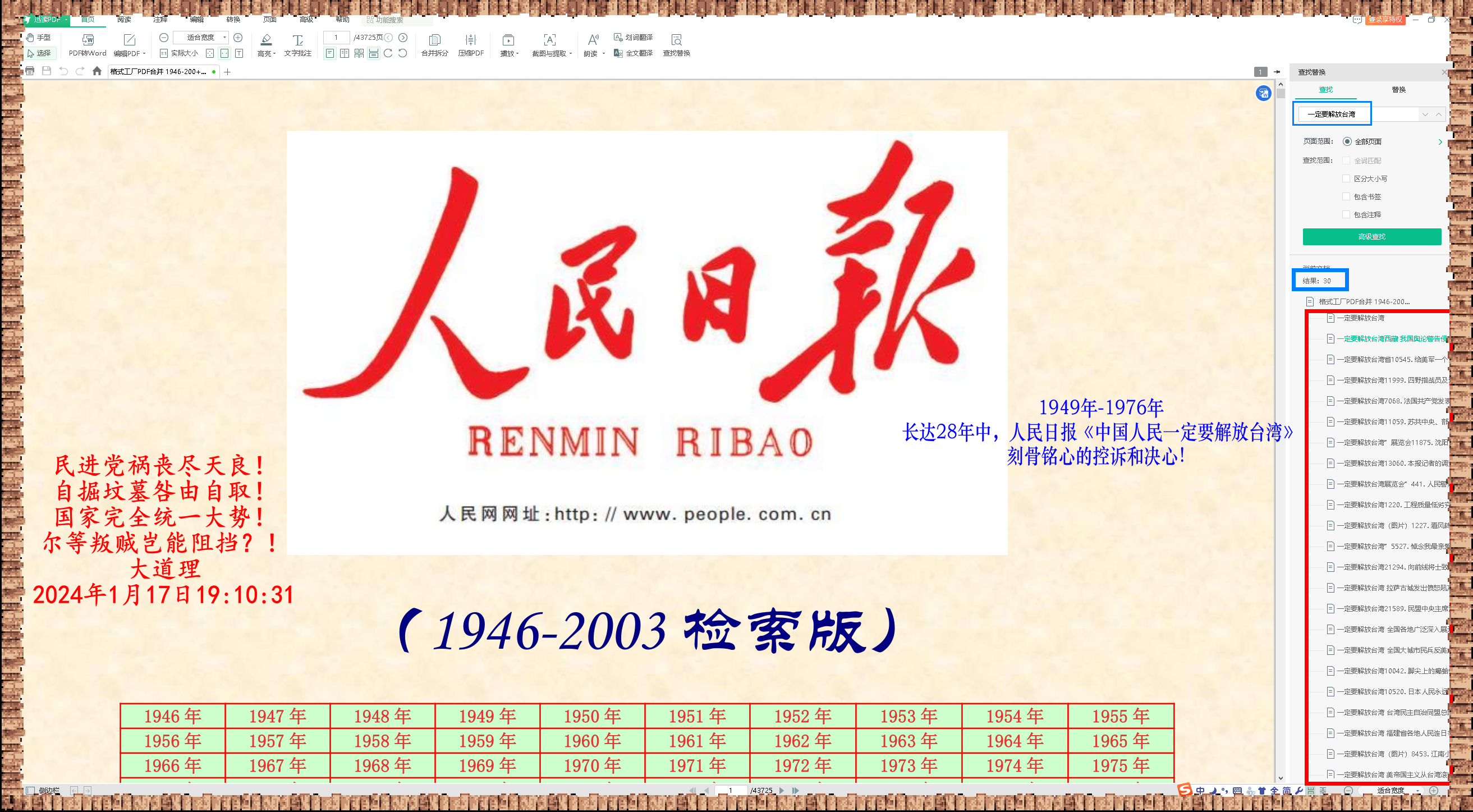 但是美國帝國主義者打算象日本在一八九五年那樣來強占臺灣,不過是在做夢。今天的中國,不是五十四年前的中國了。今天的臺灣人民,也不是五十四年前的臺灣人民了。就在從前,在日本占領時期,臺灣人民也曾舉行過幾十次武裝反抗。而自從臺灣重回祖國版圖以后,臺灣人民所自由表示的意志,更和美國間諜廖文毅和美國的其他走狗要把臺灣省從中國分立出去并合并于美國的叫喊完全相反。臺灣人民曾進行了反對美國帝國主義及其走狗國民黨反動政府奴役統治的偉大英勇斗爭。為了抗議美國帝國主義侵略中國,一九四七年一月九日,臺灣萬余學生曾舉行過雄壯的游行示威,高呼“美軍撤出中國去”。為了反對美國傀儡國民黨的暴政,兩年以前臺省人民曾進行了“二、二八”運動,掀起了轟轟烈烈的全臺灣的武裝起義。臺灣人民的這種斗爭和中國其他各省人民求解放斗爭的目標是完全相同的,這就是打倒帝國主義、封建主義與官僚資本主義對于中國人民的奴役統治,建立一個獨立的統一的人民民主的新中國,即中國人民共和國。因此,所謂“臺灣獨立運動”,乃是對于臺灣人民的絕端侮辱。