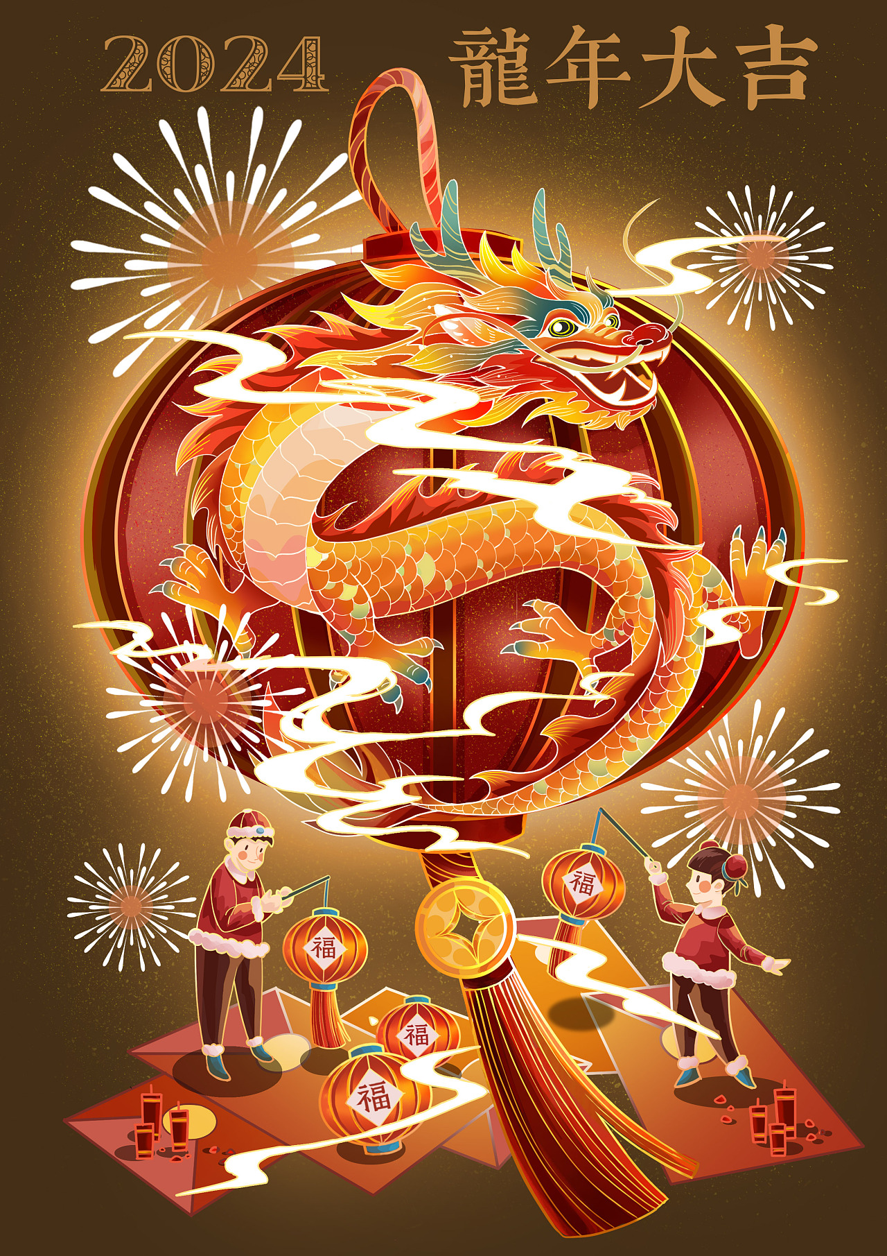 感悟上天恩 五龍降祥瑞 瑞雪兆豐年 甲辰好運來