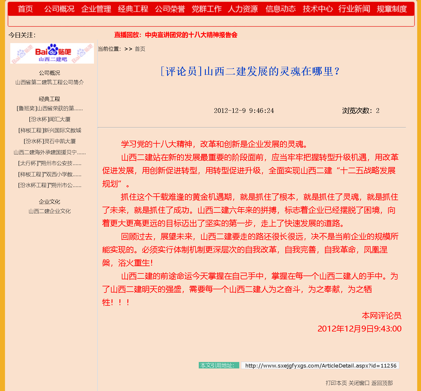 回顧過去,展望未來,山西二建要走的路還很長很遠,決不是當前企業的規模所能實現的。必須實行體制機制