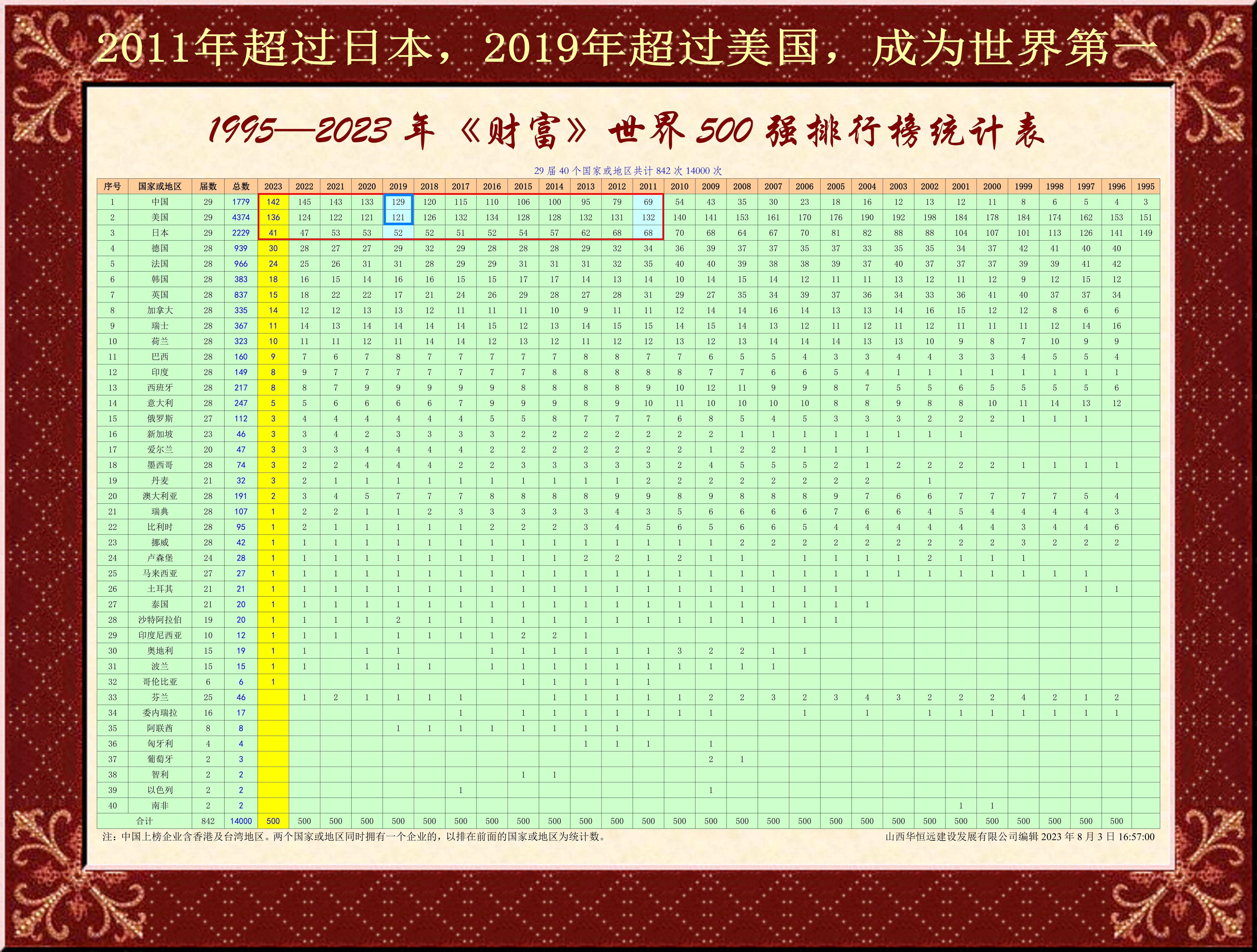 中華民族在追趕世界強國的大道上,靠著自強不息的堅定信念,靠著全體中華兒女的拼搏奮斗,更靠著中國共產黨的堅強領導,僅僅用(yong)二十五年時間就(jiu)站(zhan)在世界500強(qiang)大(da)公司第一(yi)位(wei)置,不能不說這是中華文明創世紀的奇跡!